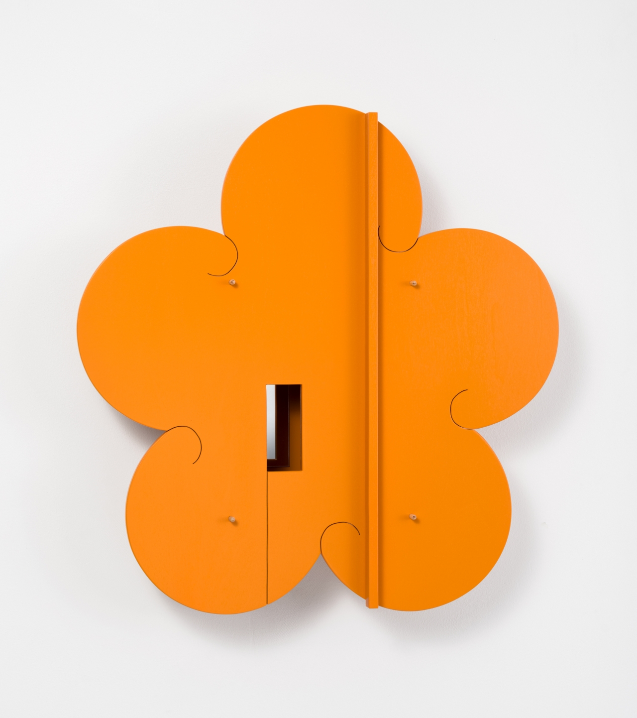 Birch plywood, oak dowels, acrylic mirror, enamel